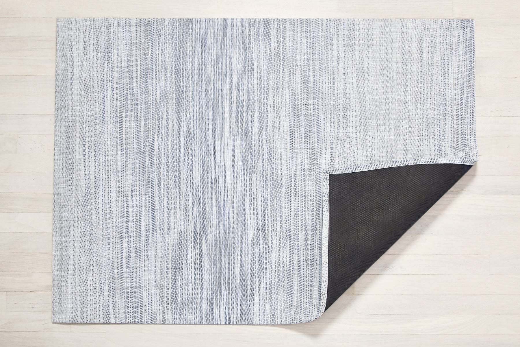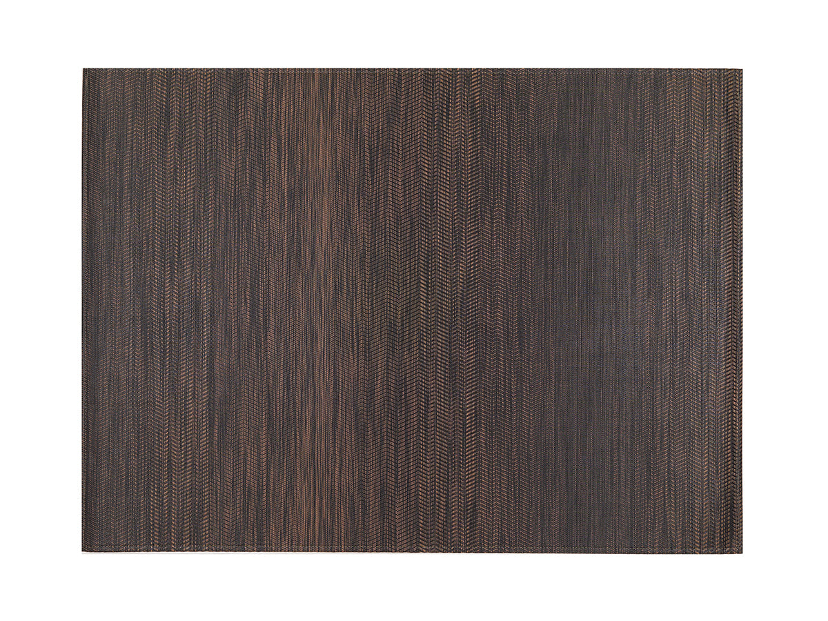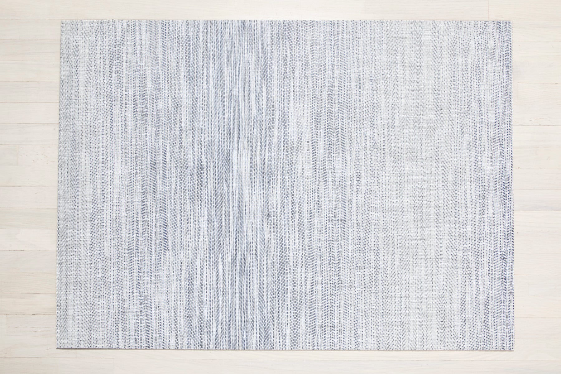 ombré saisissant grâce à une transition subtile entre différents motifs. Les fils bicolores signature de Chilewich sont tissés de façon à faire apparaître et disparaître les couleurs, comme des vagues qui se fondent dans le tissu. Disponible en Bleu et en Gris, chaque version est associée à un fil blanc cassé pour une finition lumineuse et équilibrée.