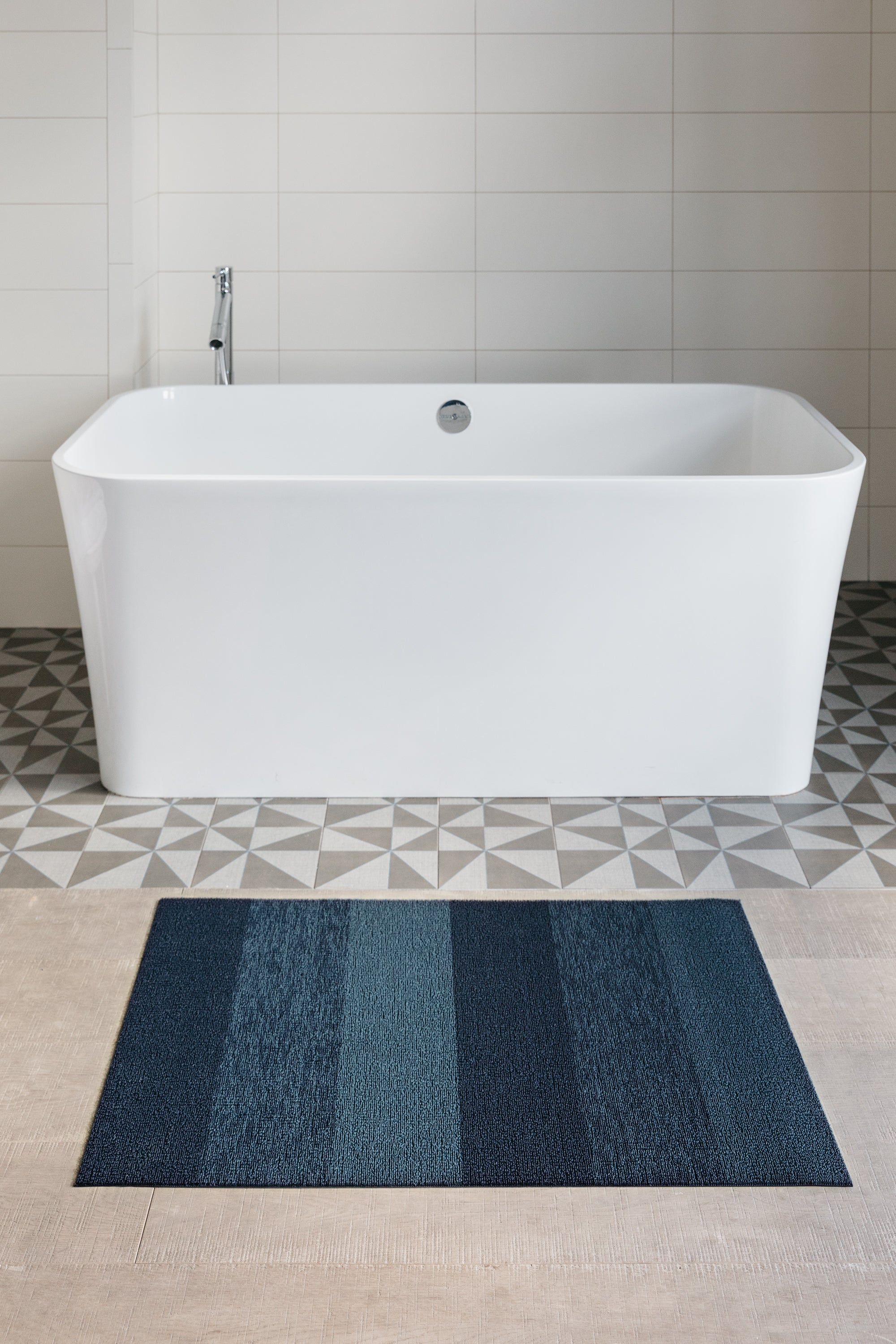Le modèle Marbled Stripe associe deux couleurs unies distinctes pour créer un effet chiné au centre du paillasson.