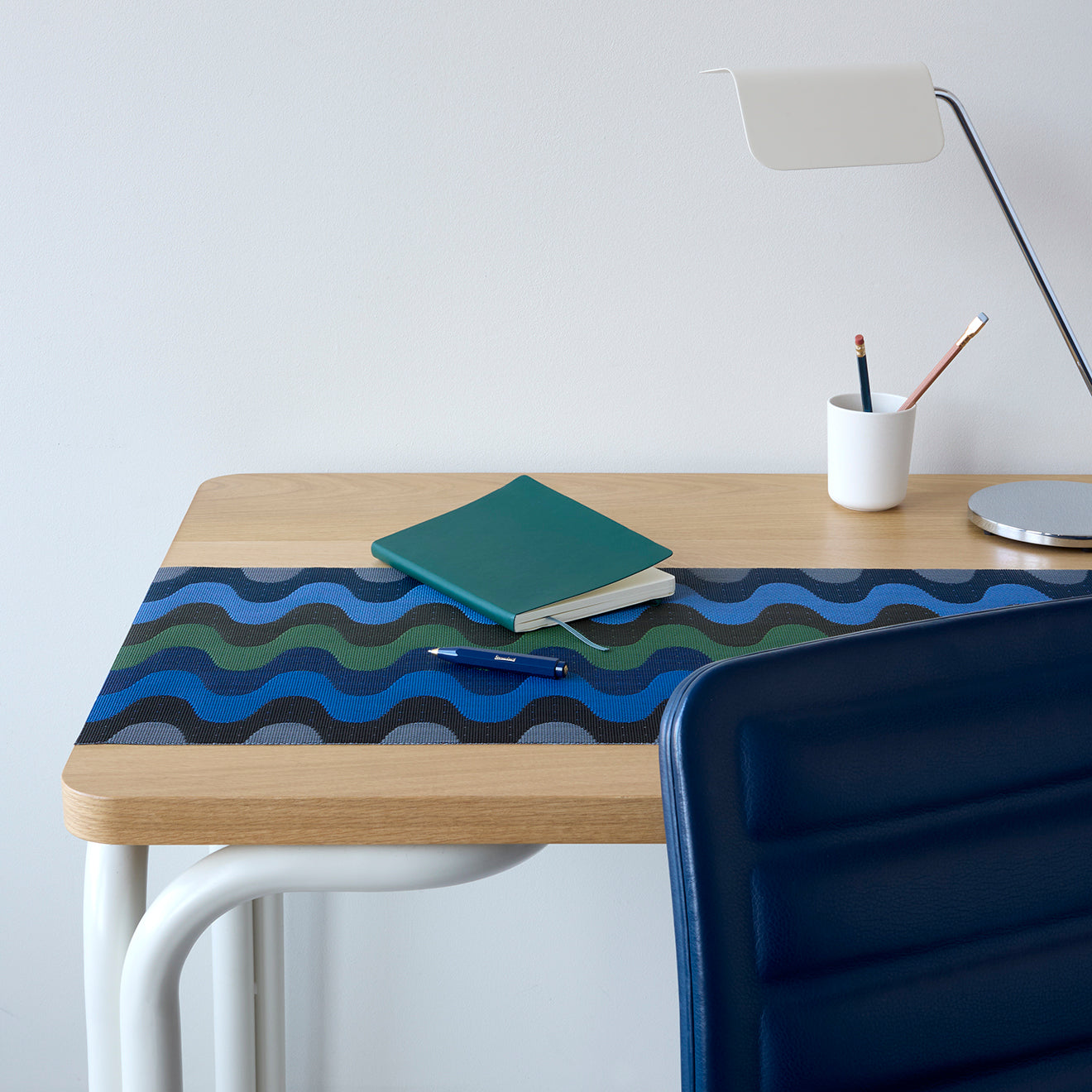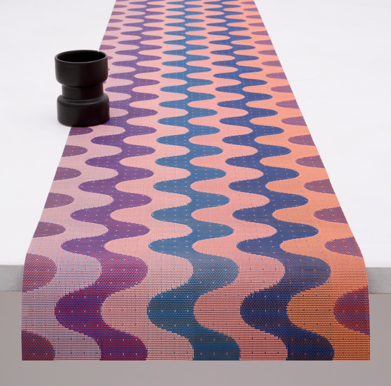 Interprétation douce et richement texturée du motif zigzag, le set de table Wiggle joue avec des courbes généreuses et une palette pleine d’énergie. Son dessin ondulant apporte du mouvement à la table, tandis que l’alternance subtile des teintes révèle toute la finesse de sa structure tissée.