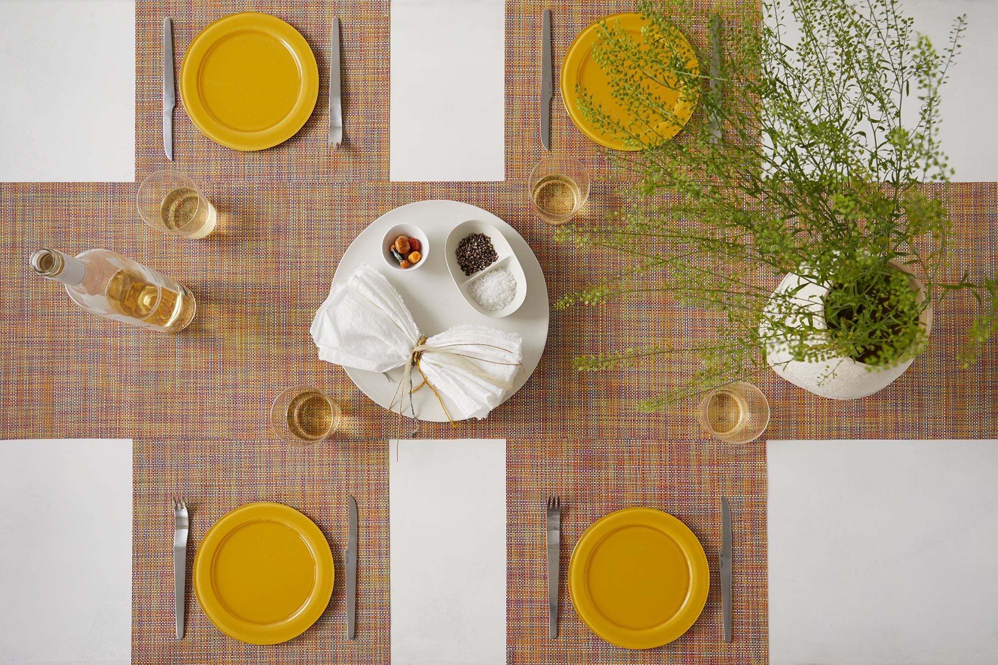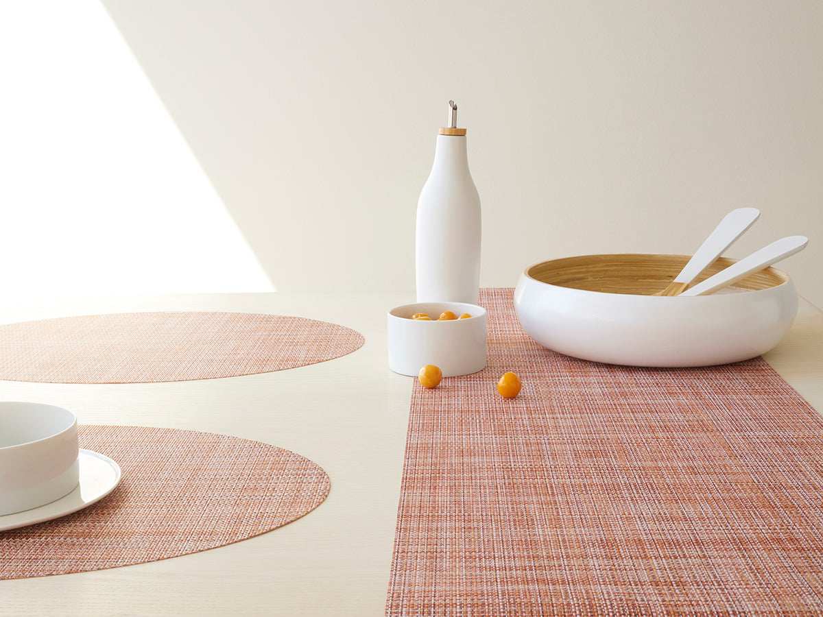 Mini Basketweave reprend le tissage emblématique de Chilewich en version allégée : deux fils sur deux au lieu de quatre sur quatre. Le résultat ? Une surface plus discrète et plus lisse, tout en conservant l’élégance du tissage original. Décliné dans une large palette de couleurs, Mini Basketweave sublime toutes les tables, du quotidien aux grandes occasions.